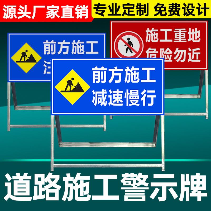 前方施工牌指示交通标志限速安全公马路道路导向施工牌交通标志牌