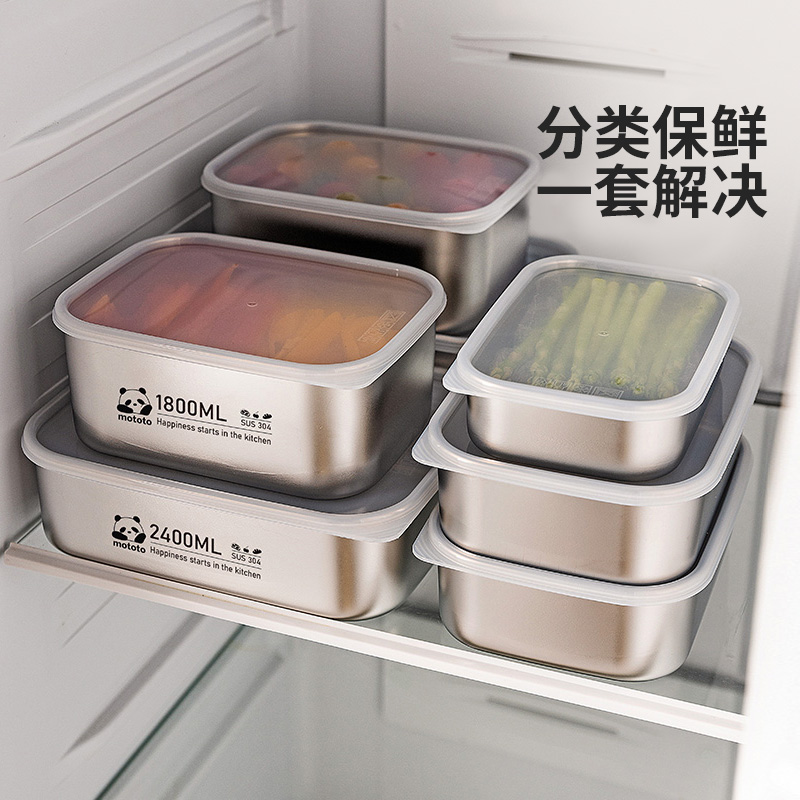 摩登主妇mototo不锈钢冰箱收纳整理盒冷冻专用盒食品级分装保鲜盒