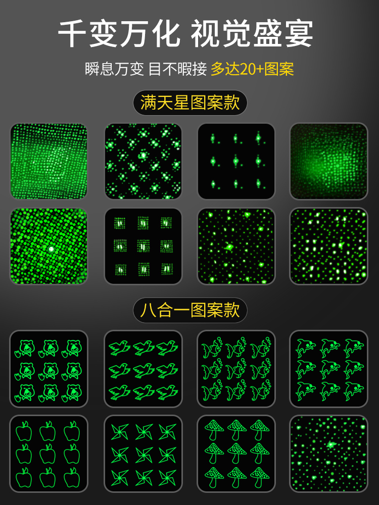 激光笔激光灯大功率镭射绿极光售楼部沙盘教学射笔usb充电强光远射红光红外线指示笔教练机多图案逗猫手电筒