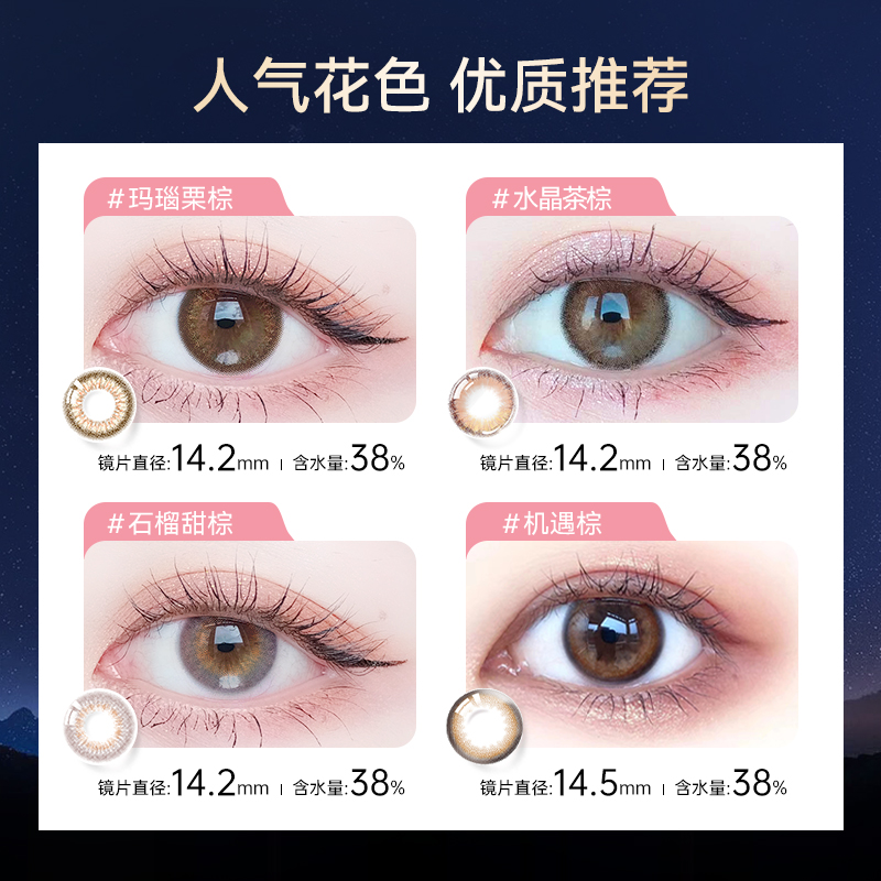【花色上新】海俪恩精选美瞳月抛2片小直径彩色隐形眼镜官方棕色