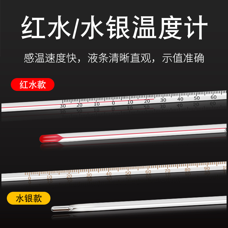 红水温度计家用测水温玻璃水银酒精工业高精度测量测试温度表实验
