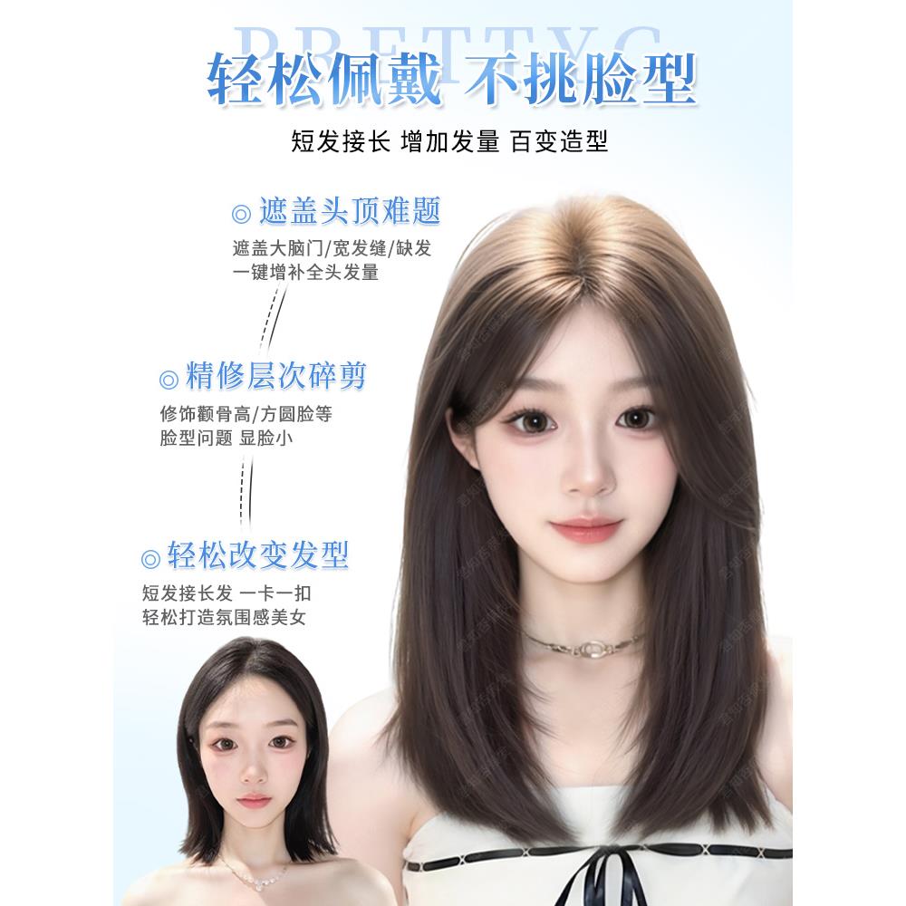 不用戴发网假发女片头顶增发量蓬松高颅顶遮白发层次锁骨发全头套