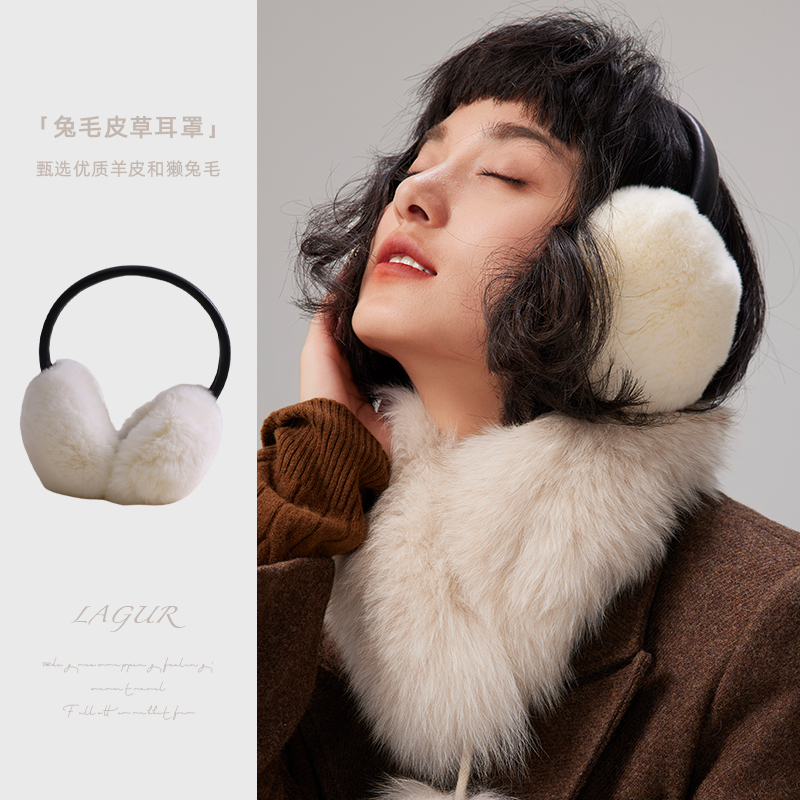 兔毛皮草耳罩「小巧精致」冬季女毛绒绒耳捂子护耳保暖耳套高颜值