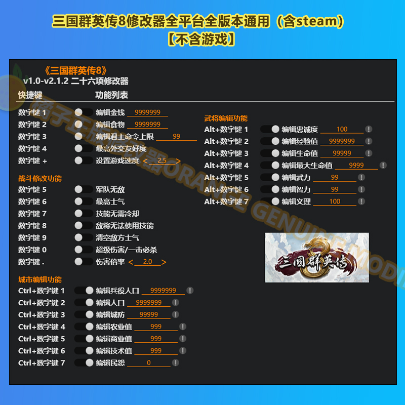 三国群英传8修改器支持正版steam联机刷金钱辅助科技工具不含游戏