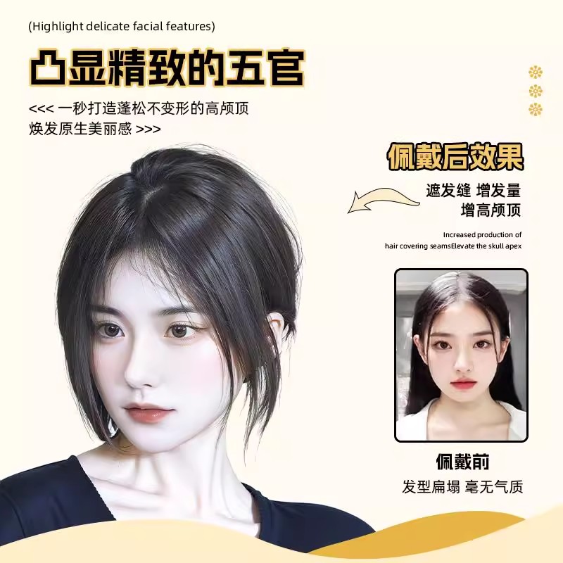 八字刘海假发女片头顶增发量蓬松仿真发假刘海高颅顶假发片前额