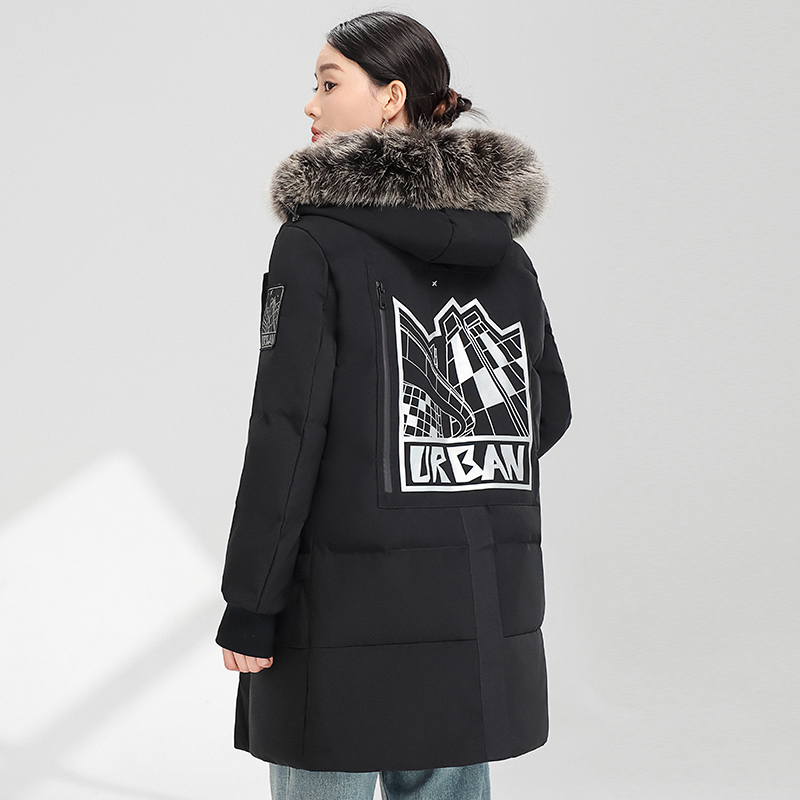 一线撤柜撤标2024年冬季新款时尚百搭女士后背印花毛领连帽羽绒服