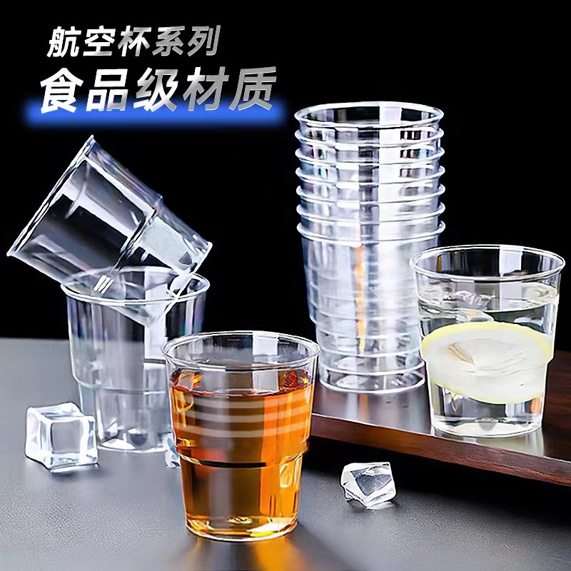 PP航空杯一次性水杯杯子耐高温50只加厚加硬塑料茶杯酒杯太空饮料