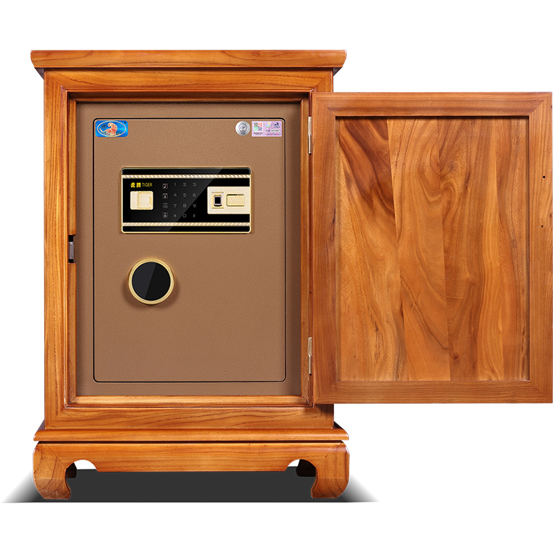 【顺丰】虎牌保险柜CSP认证老榆木实木床头指纹款密码款家用隐形云智能款保险箱74公分高