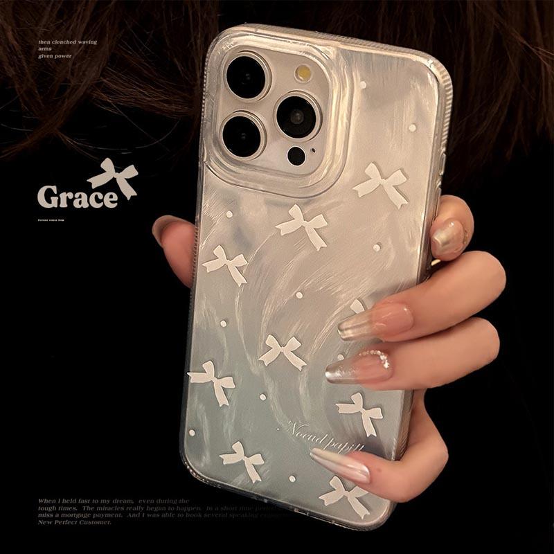 韩风ins蓝白渐变蝴蝶结秋季新款高级感手机壳适11/12/13/14/15/16