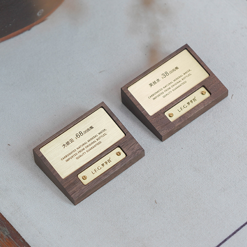 黑胡桃木黄铜高档台签价签标价牌摆台精油首饰化妆品茶叶水果价格展示牌描述牌博物馆古玩产品介绍牌铭牌定制