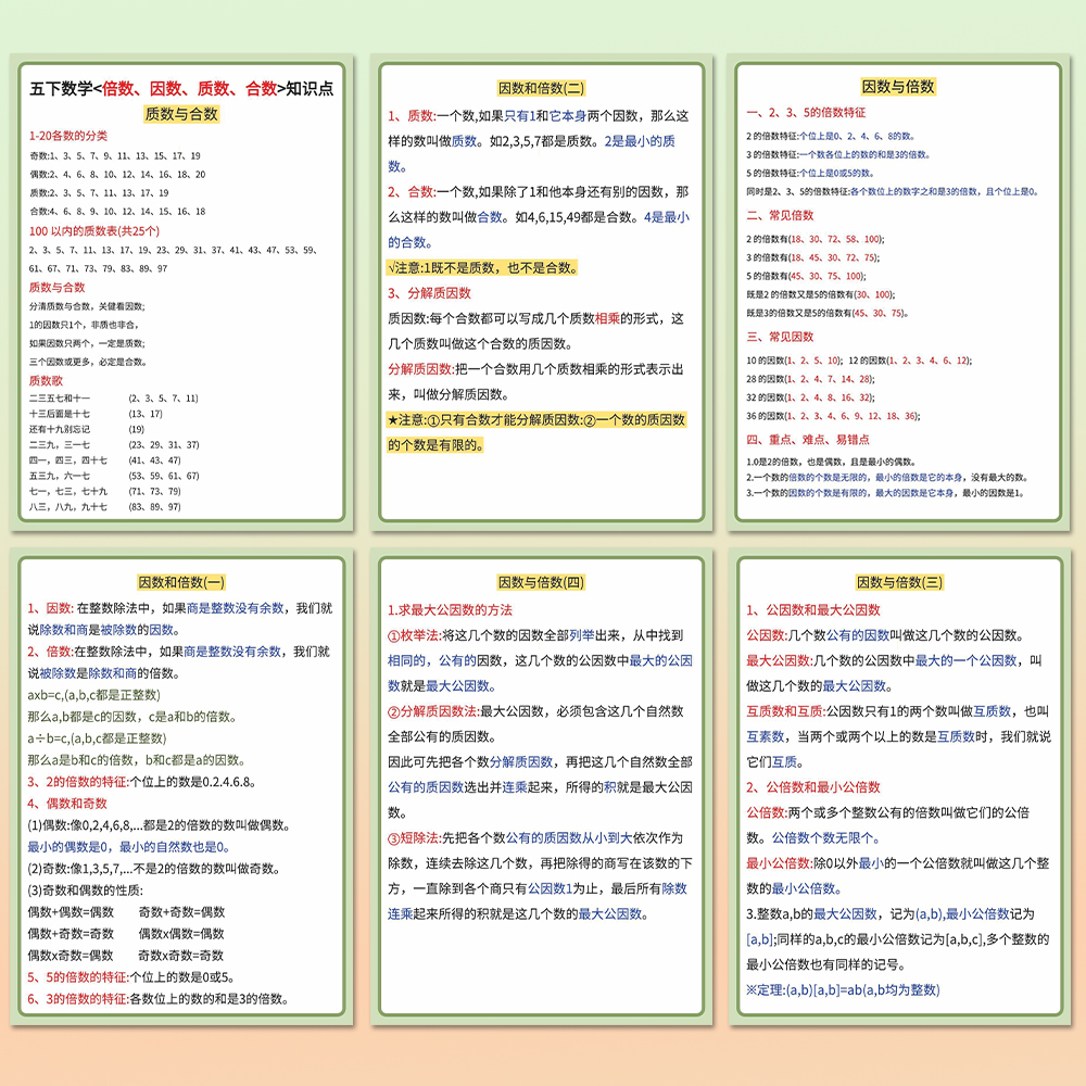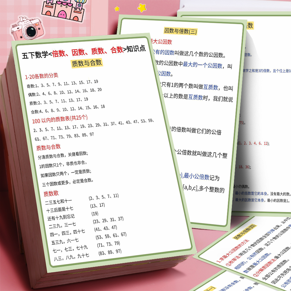 五年级下册数学基础倍数和因数重难点易错题总结笔记分享自粘贴纸