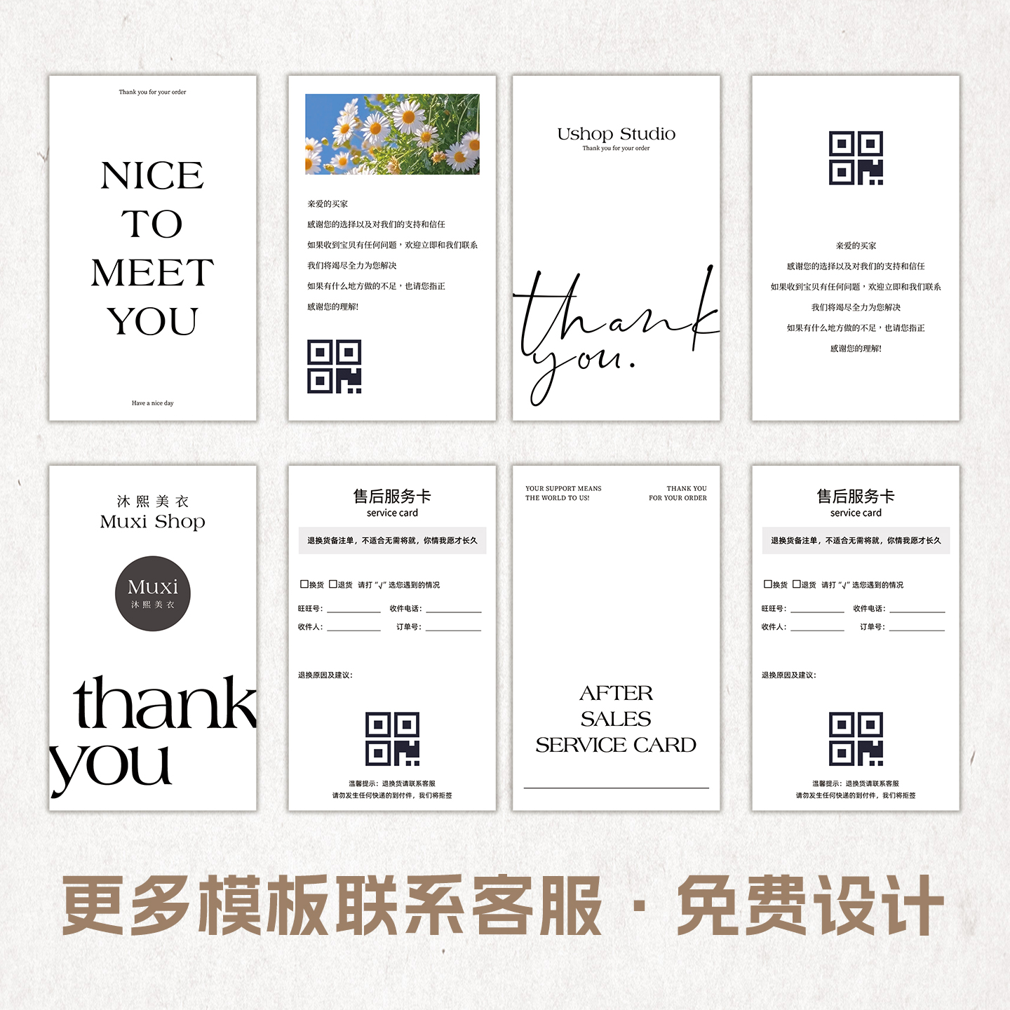 售后服务卡片订制电商店铺二维码logo明信片换货退货评论卡定制女装饰品服装广告宣传名片淘宝快递包裹感谢卡