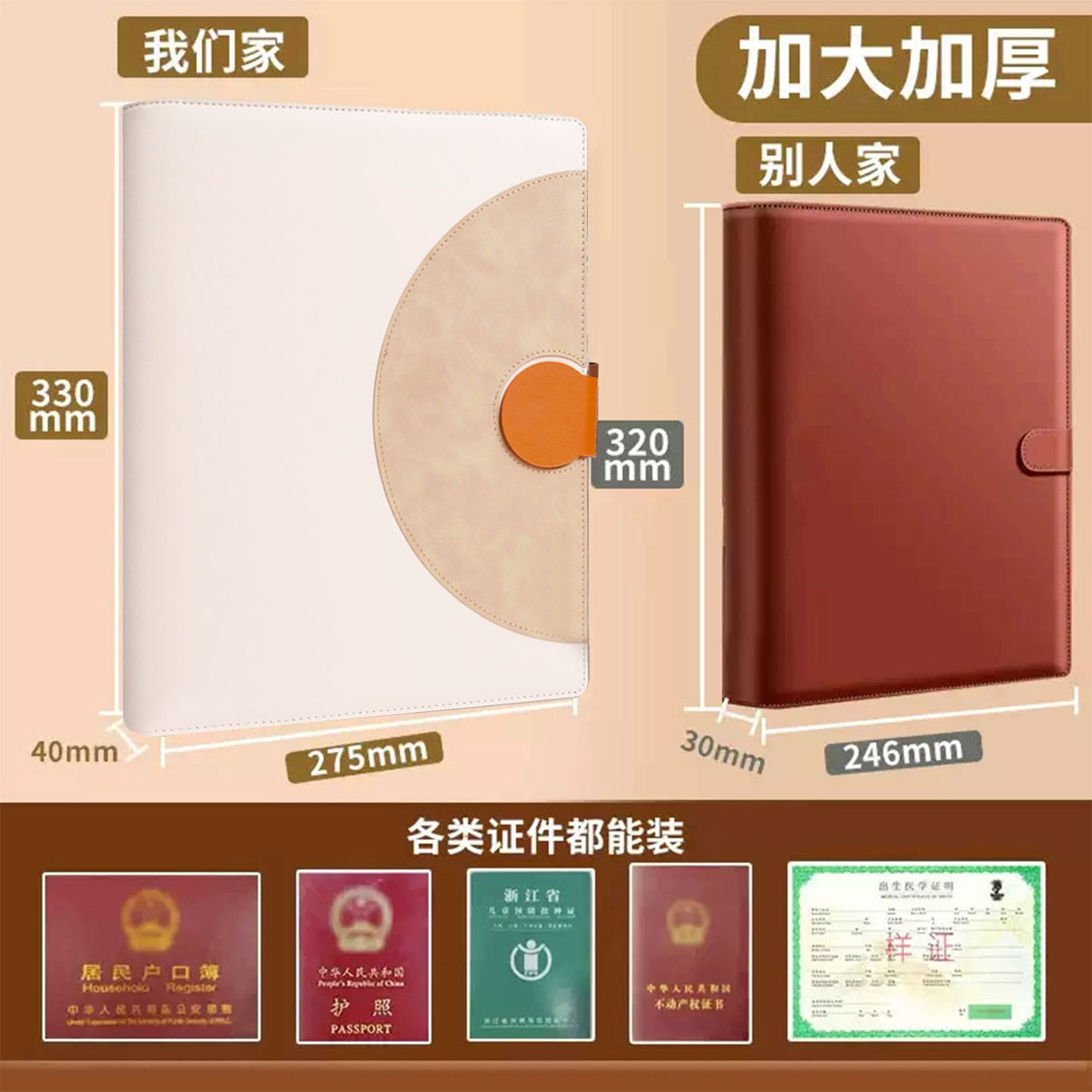 加厚大磁吸家庭证件收纳册资料活页a4多功能家用皮面房本证书票据孕妇孕检宝宝出生重要文件大容量保护套新款