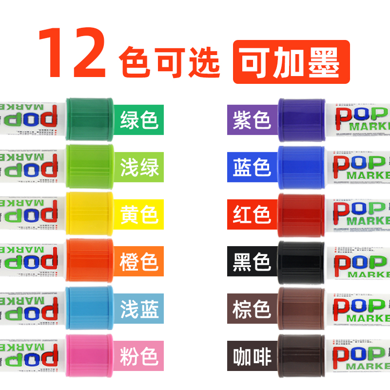中柏POP笔麦克笔海报笔超市用写海报的pop马克笔涂鸦广告笔彩色特粗加宽油性可加墨水马克笔pop笔药店用