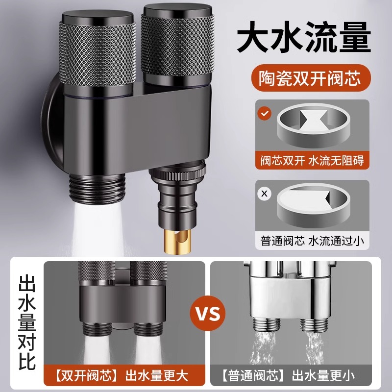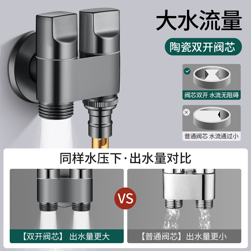 一进二出三角阀全铜洗衣机龙头止水一分二接水管万能接头水阀加长