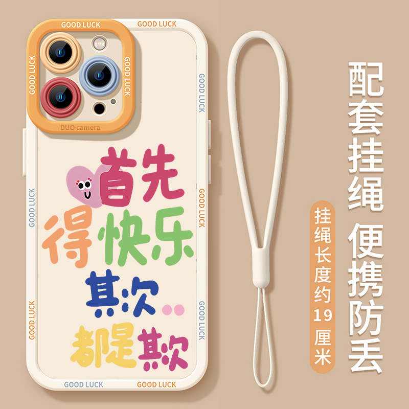 适用苹果16手机壳iPhone16ProMax新款女14搞怪文字13软胶17保护套pro防摔max可爱15少女心plus首先得快乐其次