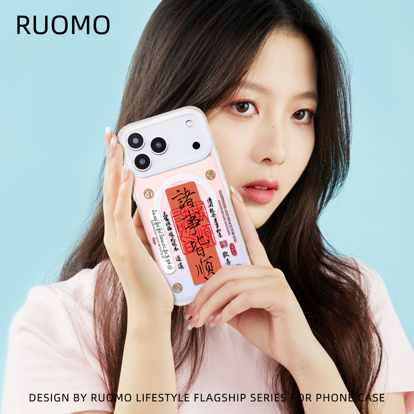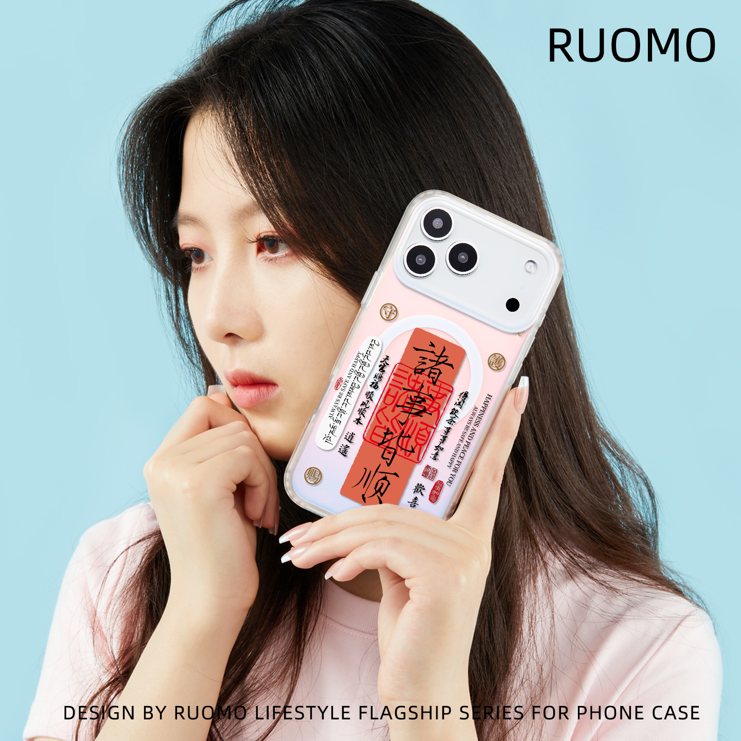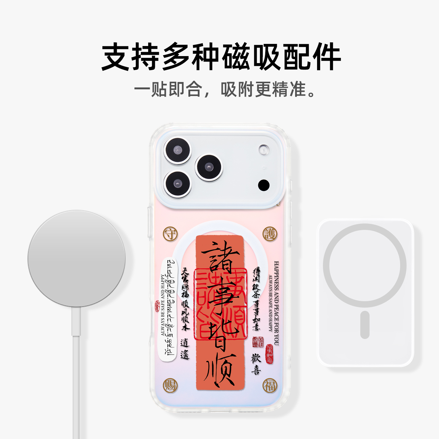 若墨适用苹果17promax手机壳新款iphone16pro女15镭射磁吸带挂绳13诸事皆顺14独特好看原创书法文字12国风