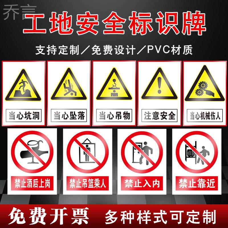 工地安全标识牌全套定制进入工地请戴安全帽施工现场 必须戴安全帽文明施工谨防高空坠物安全提示标示标志