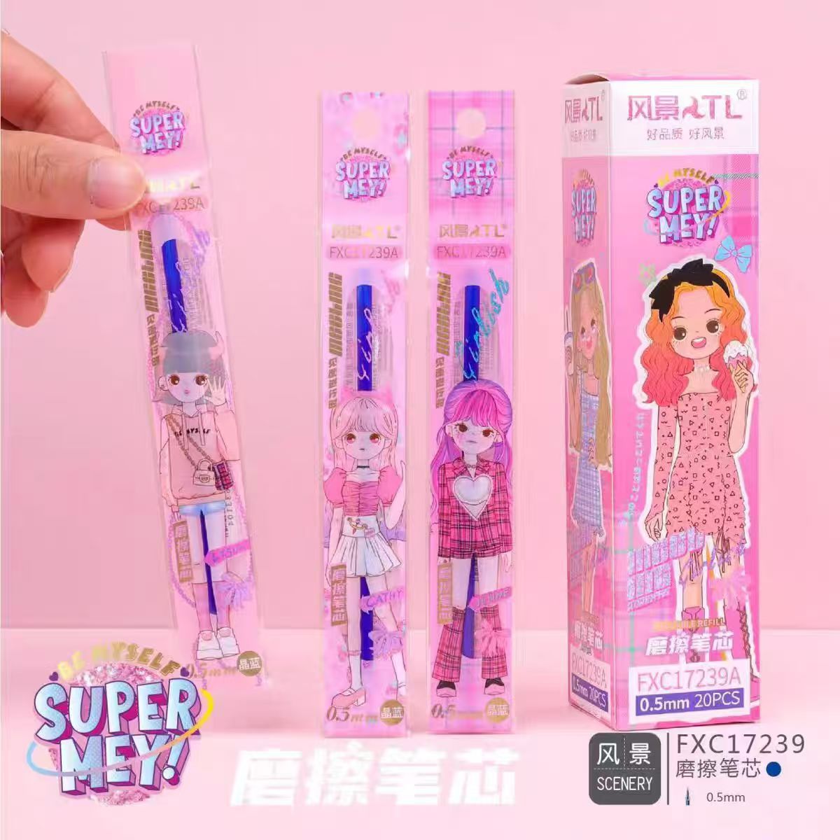 风景热可擦笔芯拔帽晶蓝色0.5全针管替芯中小学生摩擦易擦通用