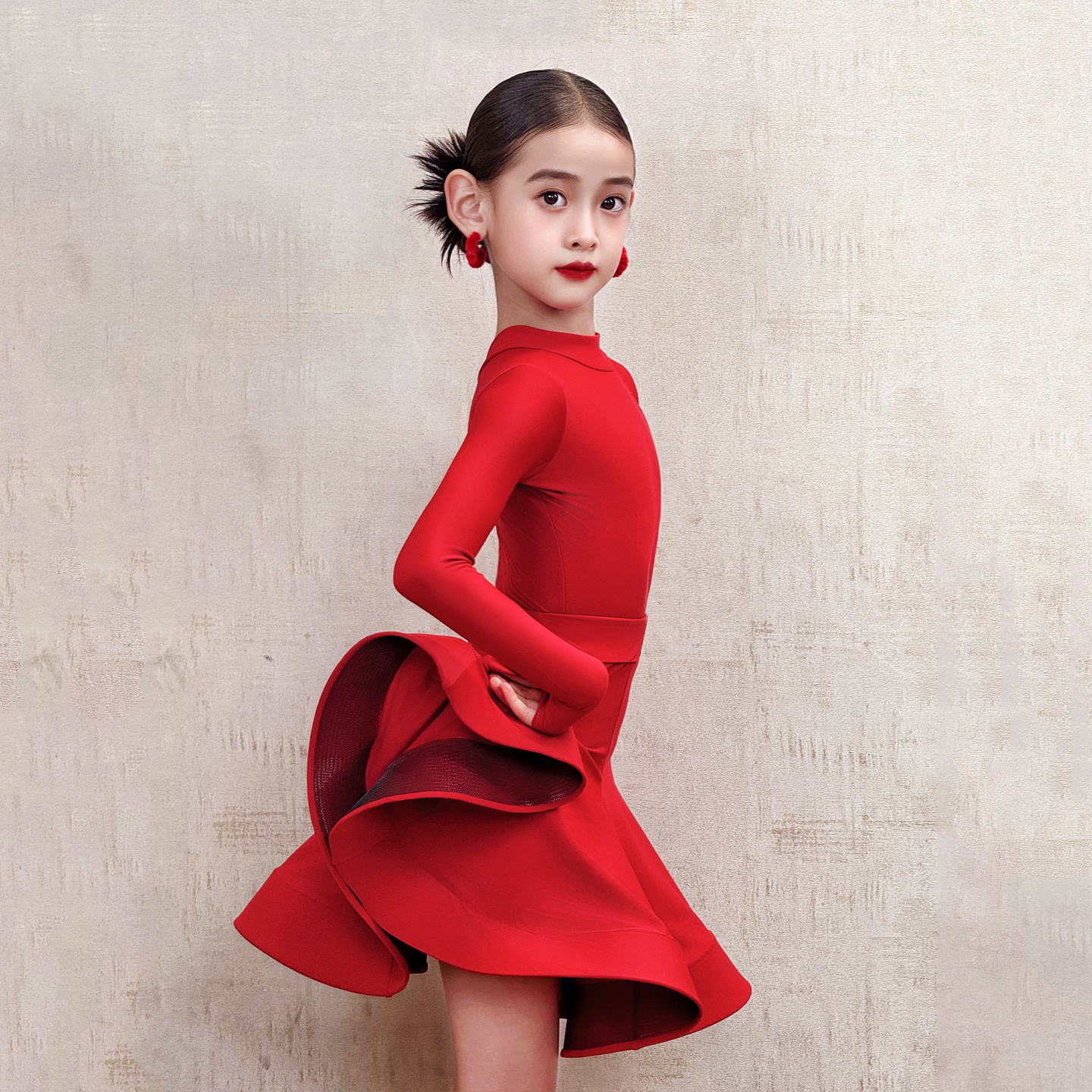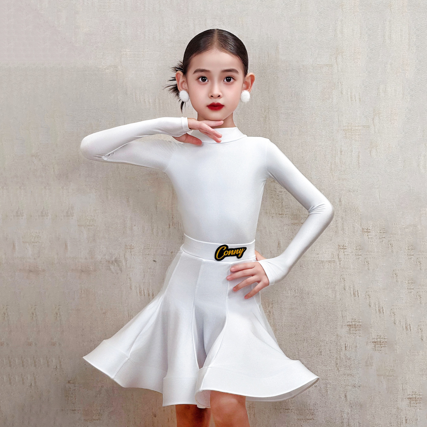 拉丁舞服女儿童新款长袖分体套装跳舞蹈考级专业比赛表演出规定服