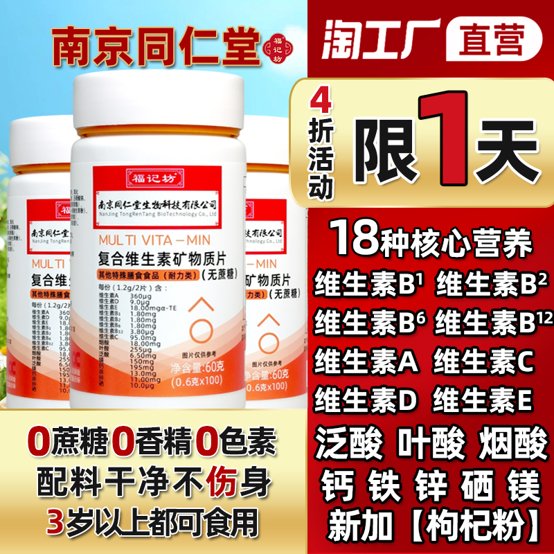 复合维生素多种多维元素片儿童b族b12维c旗舰店正品维生素C矿物质