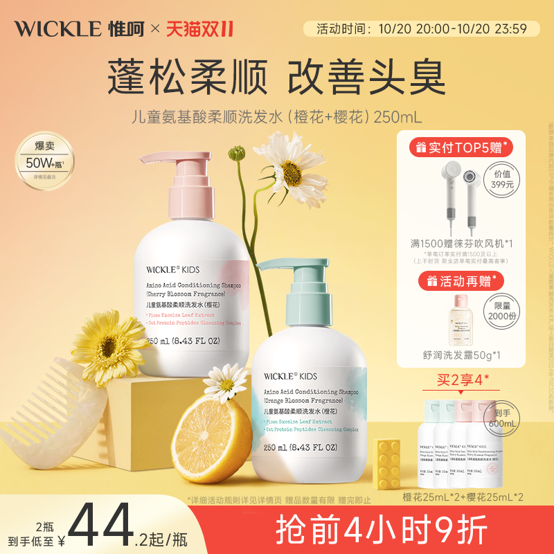 wickle儿童洗发水专用女孩男女童宝宝洗发水柔顺蓬松去油洗发露
