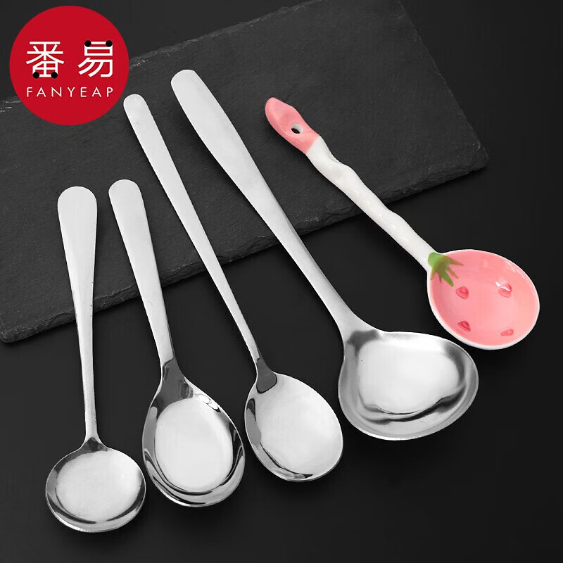 勺子/不锈钢A1vo0-甜品勺吃饭公勺汤勺调羹家用长柄汤匙中西餐