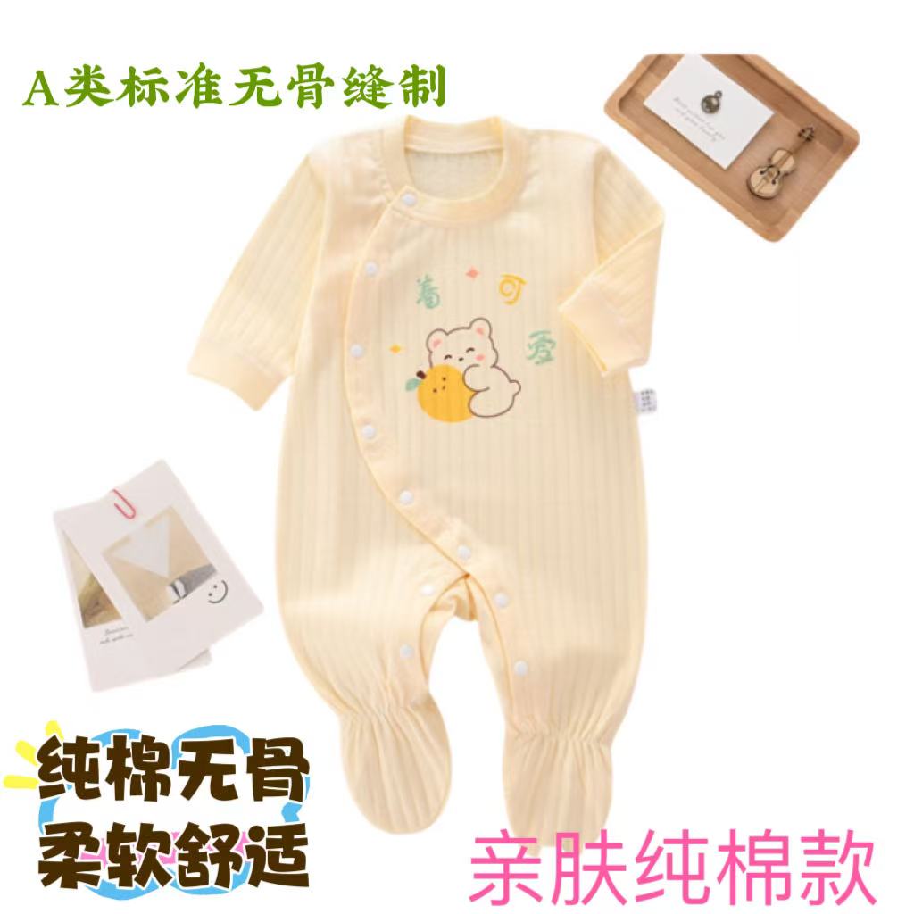 新生婴儿连脚连体哈衣服宝宝无骨打底衣0-3个月按扣外出爬服春秋