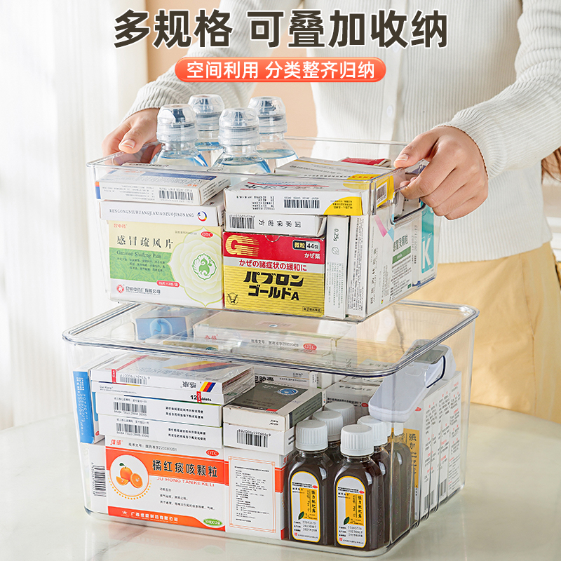 药箱家庭装药物收纳盒家用大容量收纳药品柜药盒整理箱子透明柜内