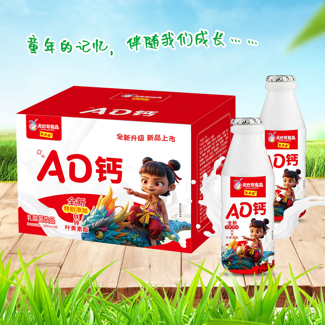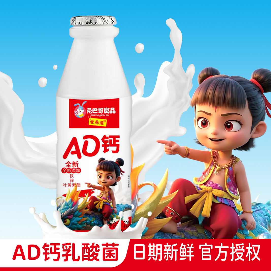 魔童联名AD钙奶220g*12瓶原味大瓶早餐饮品儿童饮料钙铁锌乳酸菌