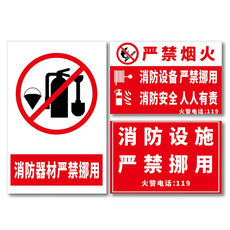 禁止挪动消防器材标识消火栓灭火器非紧急情况禁止遮挡使用定期检查火警安全警示提示贴操作管理标语告示标志