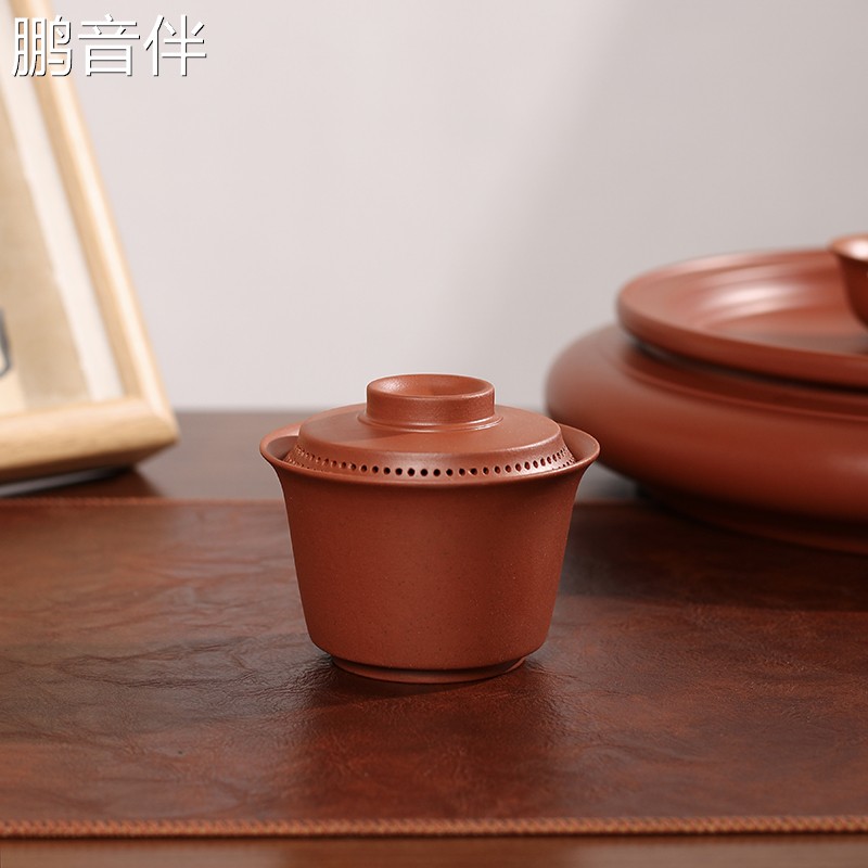 海外包邮潮州原矿红泥手抓盖碗120ml全网孔不烫手出汤迅速可携式盖碗茶具摆件饰品饰品