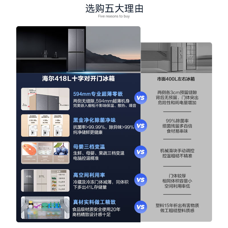 海尔冰箱以旧换新补贴418L十字双开超薄零嵌入式冰箱家用一级官方
