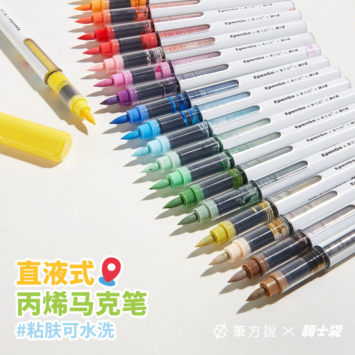 三年二班×笔方说直液式丙烯软头马克笔小学生美术专用水彩笔幼儿园水笔可水洗无毒画笔颜色笔拍立得涂鸦笔F