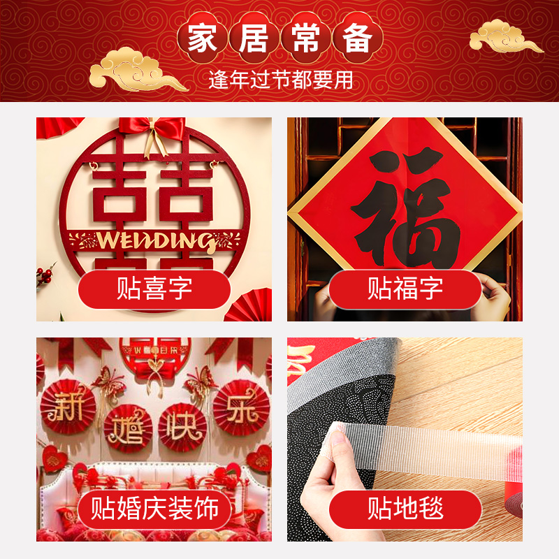 米乐奇贴对联春联专用胶不留痕高粘度强力网格双面胶门对固定贴粘地毯封边墙面装饰结婚婚房背景墙装饰无痕胶