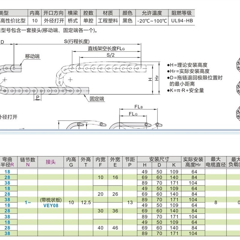 VBY08-1010/1020/1030/1040-R18/28/38-VEY08国产拖链 一般用 10