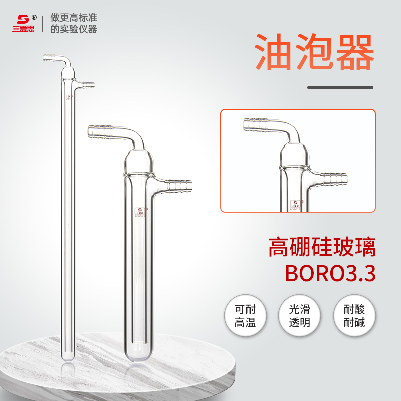 三爱思油泡器通气管 尺寸可定制 充入硅油观察气体流速 透明高硼硅 加厚玻璃实验室仪器接软管 橡胶管 乳胶管