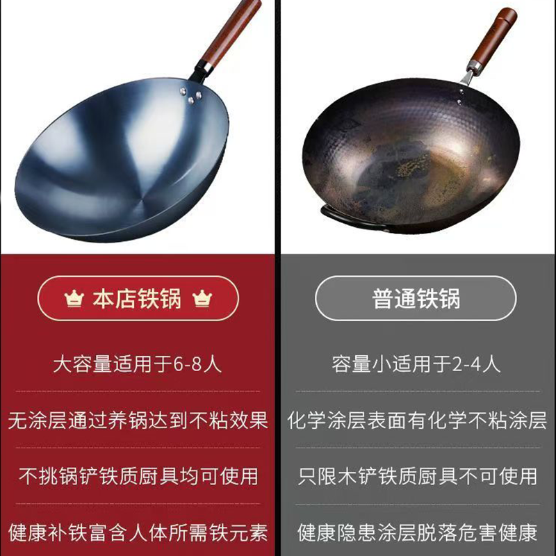 正品传统老式铁锅无涂层家用熟铁炒菜锅不粘锅适用燃气灶专用炒锅
