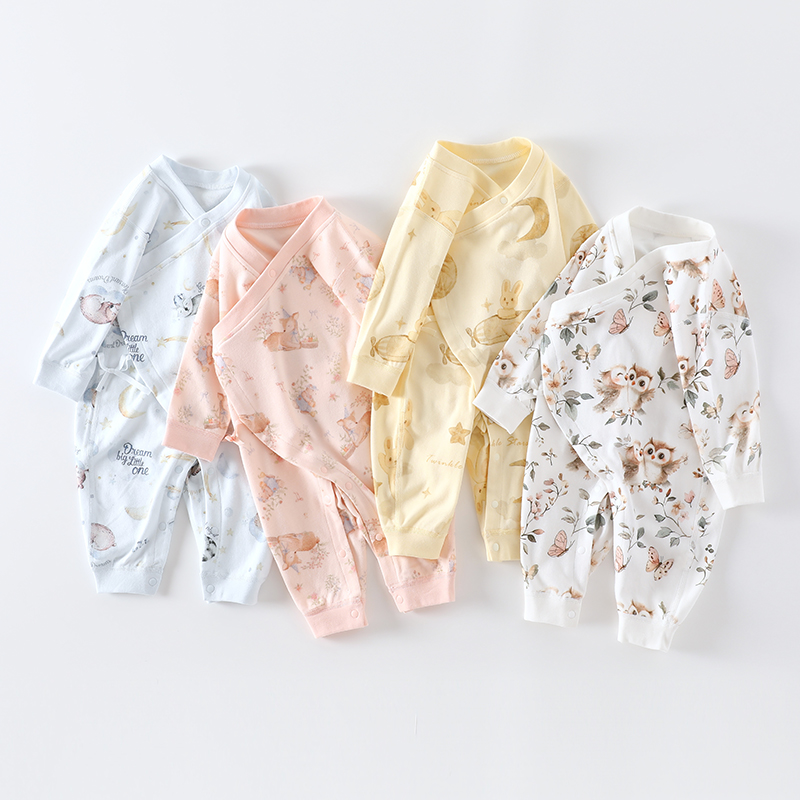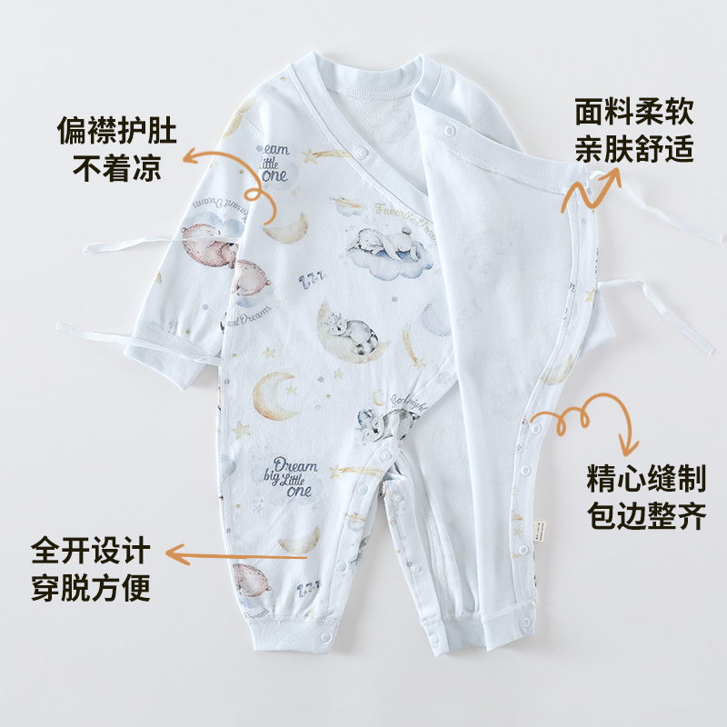 全棉时代新生婴儿睡衣春夏男女满月宝宝和尚服连体衣服婴幼儿和袍