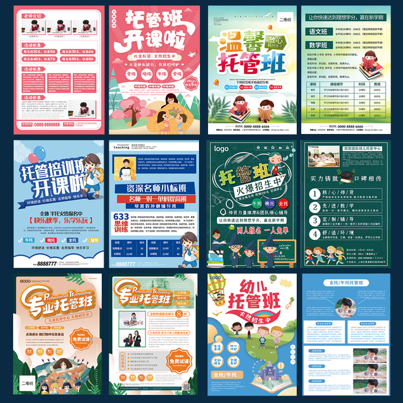 午托班宣传海报定制广告单页设计托管培训彩页幼儿园招生传单印制