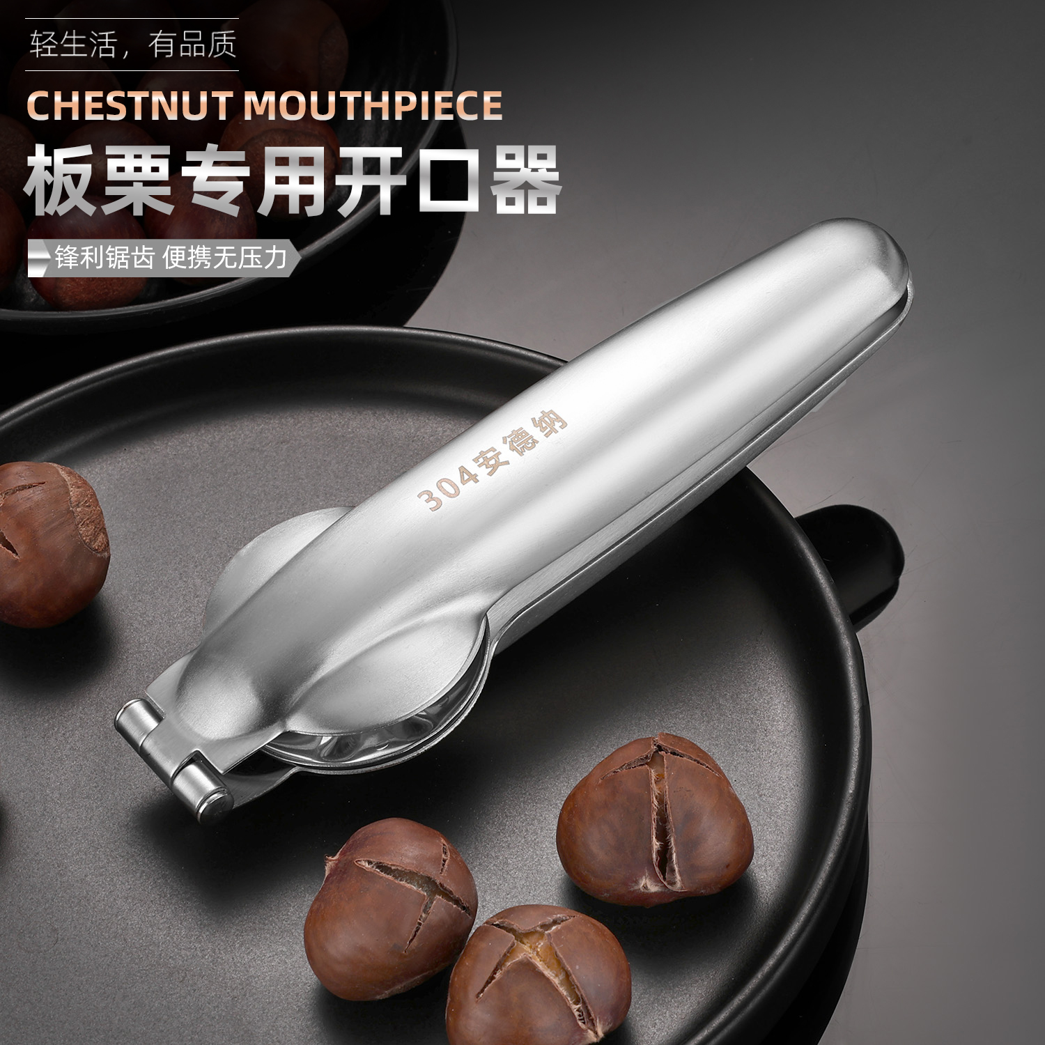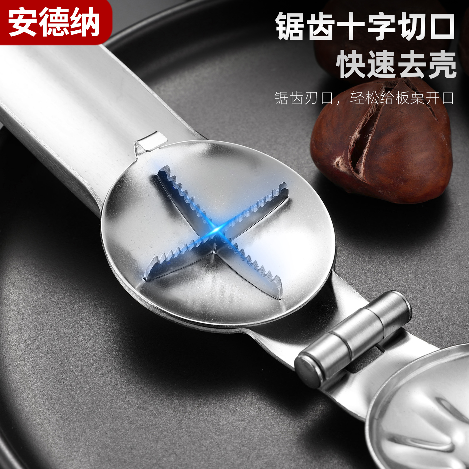 加厚板栗开口器不锈钢剥板栗神器十字划口刀开壳去皮生板栗夹切口