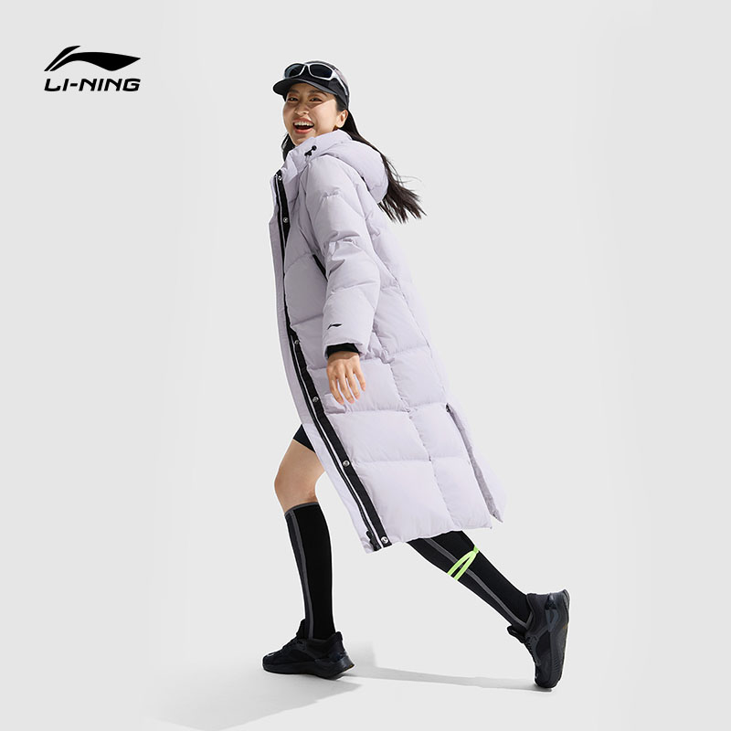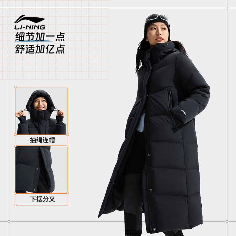 李宁火锅羽绒服丨女款冬季长款鸭绒棉服加厚保暖上衣连帽运动外套