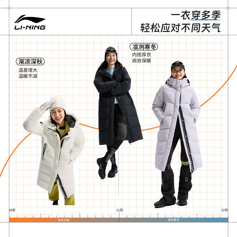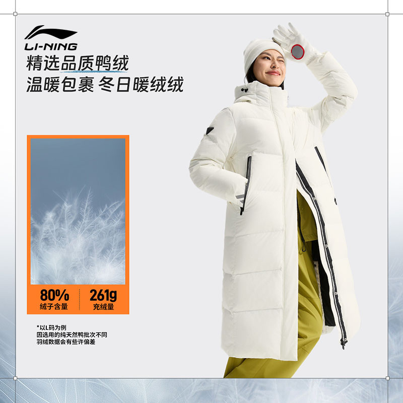 李宁羽绒服 溯之东方主题 女款防泼水防风透湿80%鸭绒长羽绒服