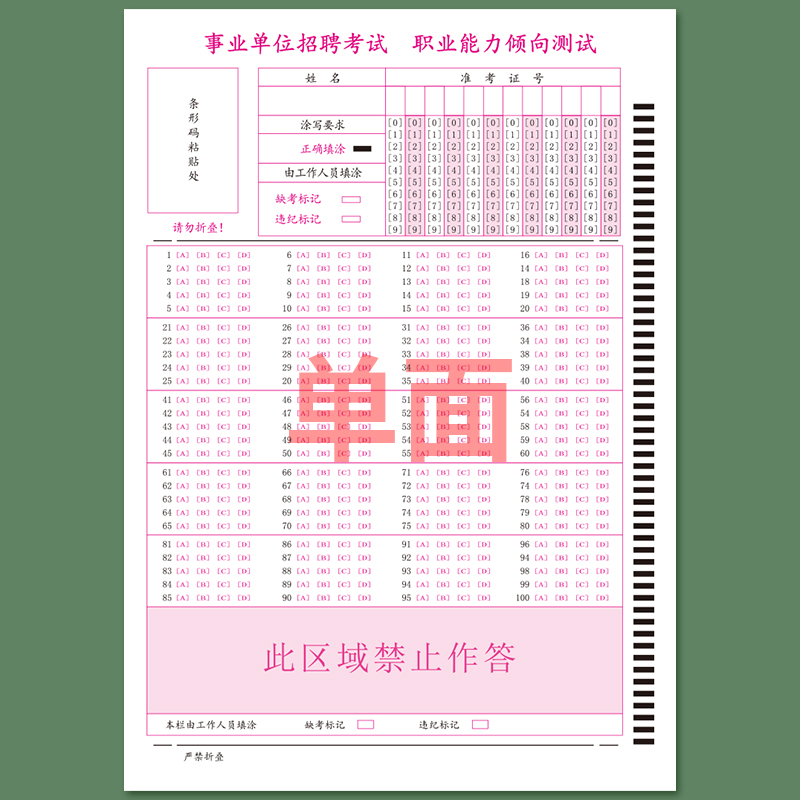 事业单位招聘考试职业能力倾向测验答题卡100道选择题 四川上海浙江通用定制各类答题卡