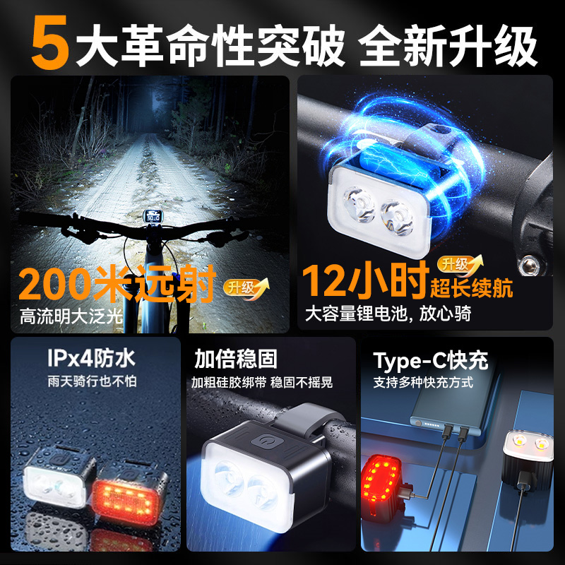 自行车灯照明前灯高强光夜骑尾灯山地公路儿童单车灯防雨骑行装备