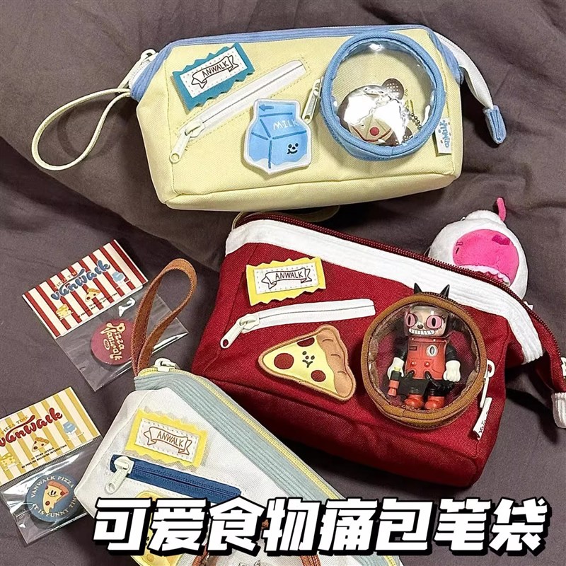 速发可爱食物笔袋二次元痛包2025新款孩高颜值大容量撞色多层透明