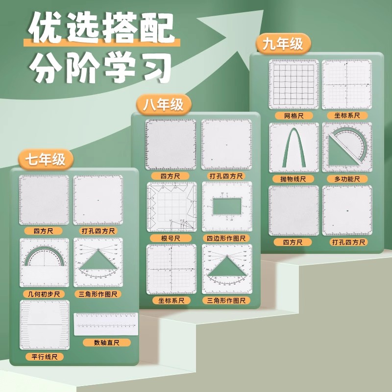 初中数学打孔四方尺函数几何多功能尺子初高中考生绘图可擦坐标系抛物线动点推理分析解题尺【威震四方格尺】