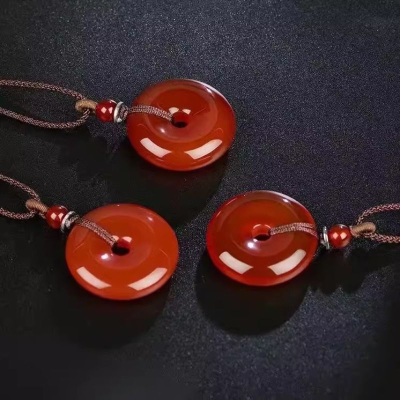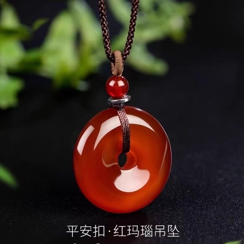 红玛瑙玉髓平安扣吊坠玉石项链生日礼物大小饰品男款女款玉佩