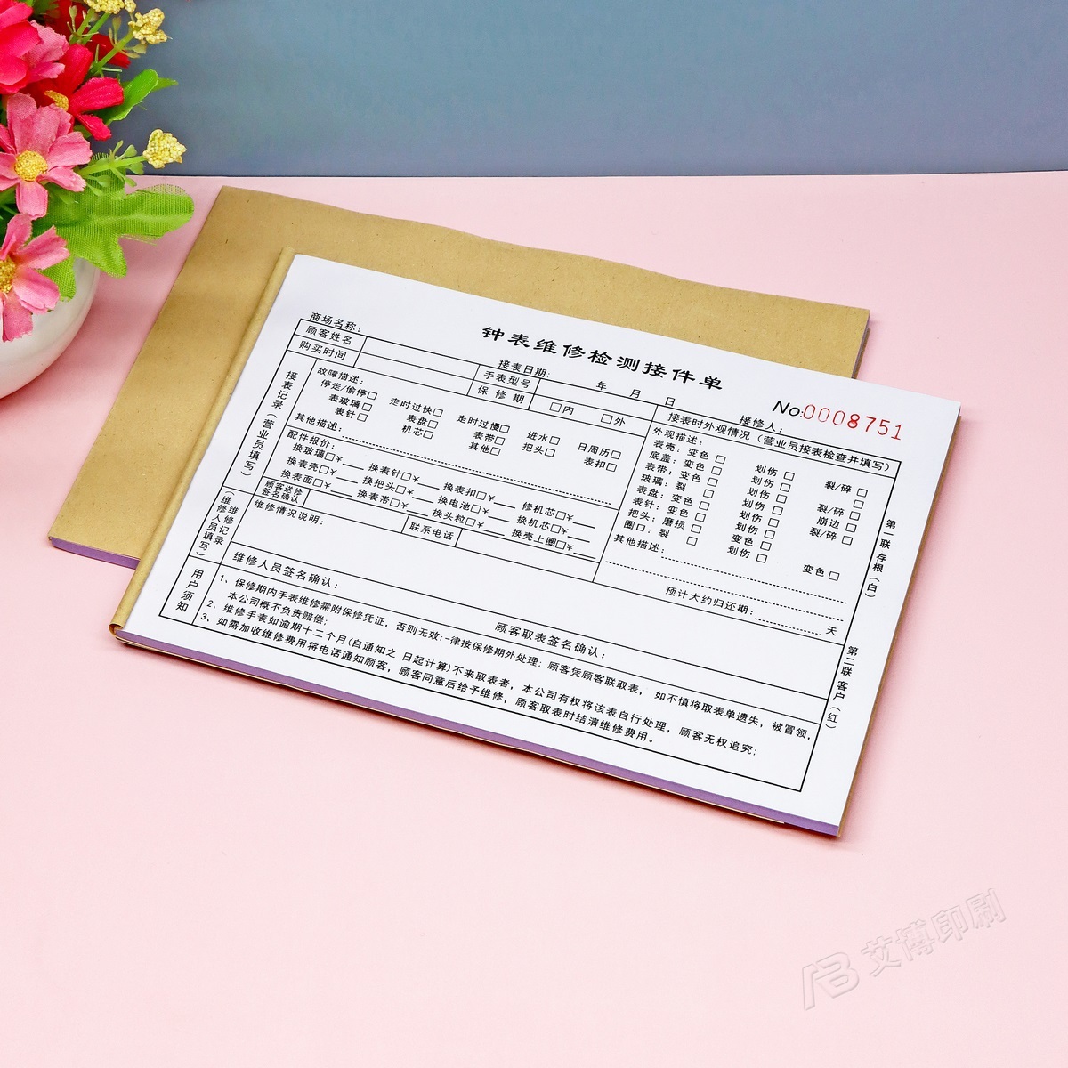 钟表维修检测接表明细记录单本二联定制手表保修单维护保养服务单