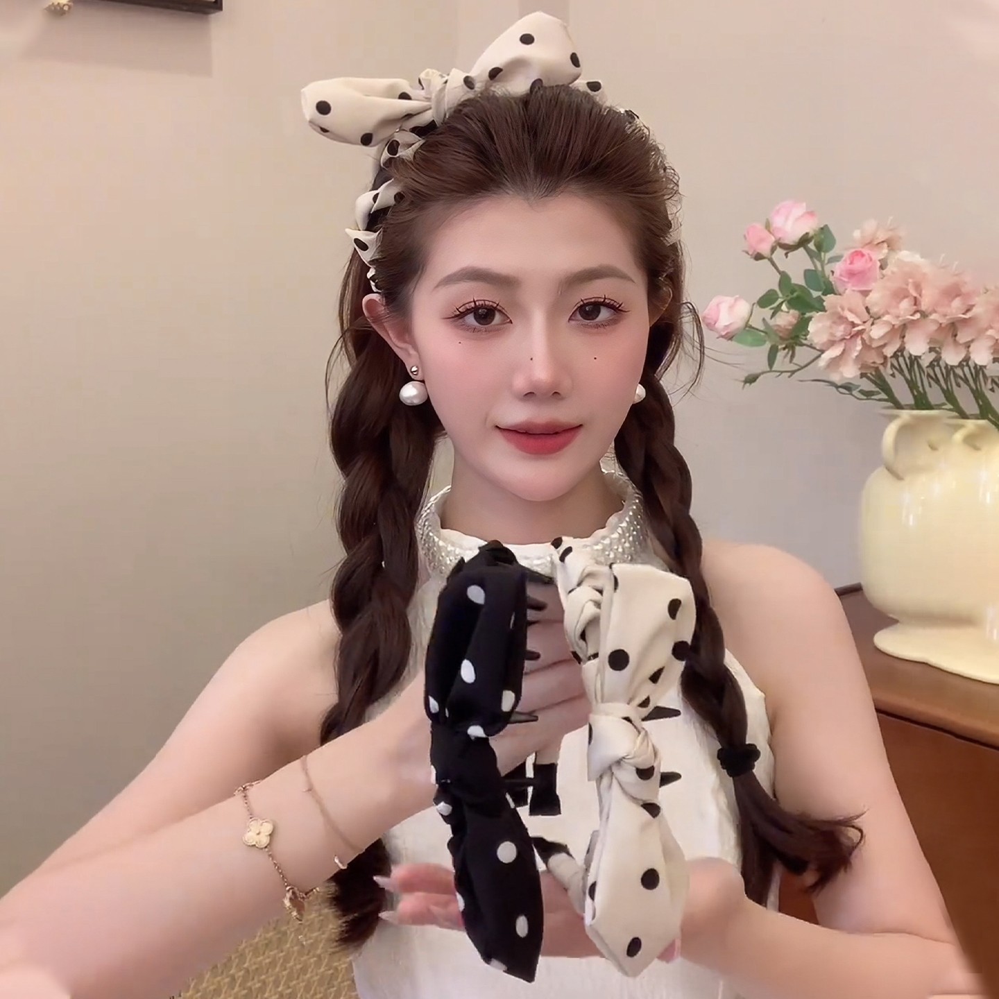 适合夏天的波点兔耳朵蝴蝶结发箍女款2025新款高颅顶发箍发夹头饰